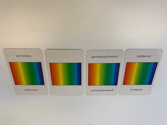 Tijdens develop your talent hebben we een spel gespeeld met kaarten waar kwaliteiten op zichtbaar waren. De opdracht was om je eigen kwaliteiten op een rijtje te zetten: welke kwaliteiten vind je dat je zelf hebt? welke kwaliteiten zou je aan andere geven? Uiteindelijk heb je kwaliteiten die je jezelf geeft en kwaliteiten die je van anderen hebt ontvangen. Het geeft je een verfrissend inzicht en bevestigd je eigen keuzes of verbaast je met kwaliteiten waarvan je niet wist dat ze zo zichtbaar waren voor anderen. Deze zijn hieronder weergegeven.